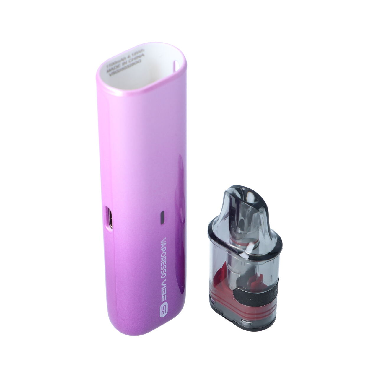 Im Inneren des Vaporesso Vibe SE Podsystem arbeitet ein fest verbauter 1100 mAh Akku, der dir ausreichend Power für viele Stunden Dampfvergnügen bietet. Geladen wird schnell und sicher per USB-C mit 5V/1A Ladestrom – einfach, modern, effizient. Der Akkustand wird dir am Stick über eine LED angezeigt. Hierbei bedeutet Grün ein Akkustand von 70-100%, Blau von 30-70% und Rot 0-30%.